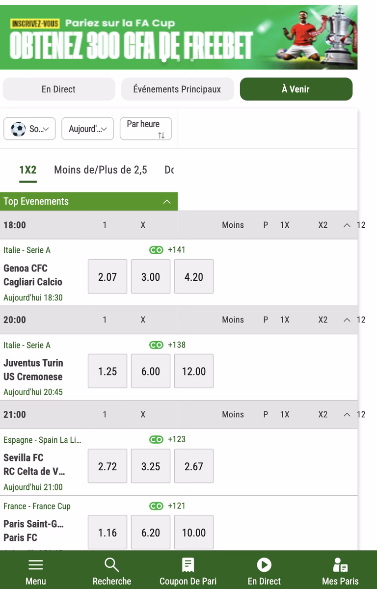 - Accès direct depuis le Bénin La plateforme est disponible localement, sans restrictions techniques ni configurations complexes. Vous pouvez parier en ligne immédiatement, depuis le Bénin.
